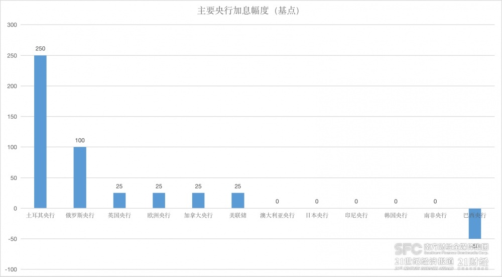 与此同期,也有一些央行格外“超过”。土耳其央行平稳鼓动货币策略普通化进度,选拔加息250个基点;在通胀增速加速的布景下,俄罗斯央行时隔17个月初次加息,幅度不测高达100个基点;而加息“先驱”仍是吹响降息军号,巴西央行超预期降息50个基点。