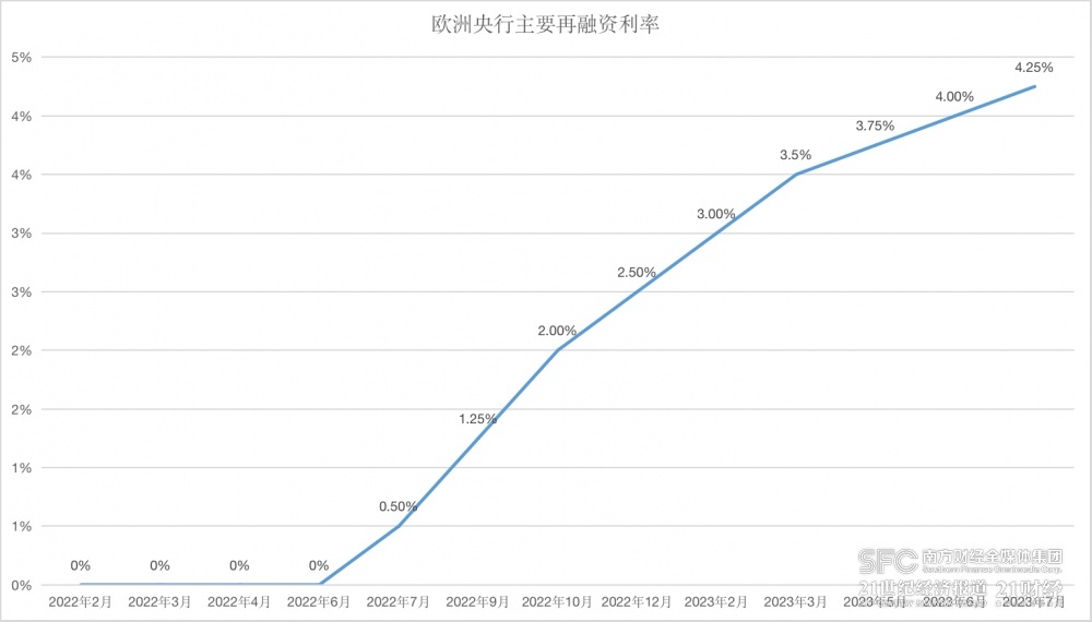 欧洲的情况也基本雷同。7月27日,欧洲央行如预期加息25个基点,主要再融资利率、角落假贷利率和入款机制利率别离上调至4.25%、4.50%和3.75%。