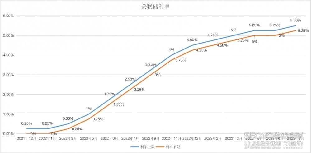 7月27日,好意思联储如预期加息25个基点,这是好意思联储在曩昔12次会议中的第11次加息,利率办法区间升至5.25%-5.50%,前次达到这一水平还要回想到2007年楼市崩盘之前。
