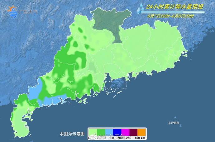 上分8日,西部市县有中雷雨局部暴雨或大暴雨,其余大部分市县有(雷)阵雨局部大雨。最高气温:粤西和沿海市县30℃~33℃,其余大部分市县34℃~36℃。